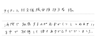 病院で取得するのがむずかしいといわれている中で取得して頂きありがとうございました。