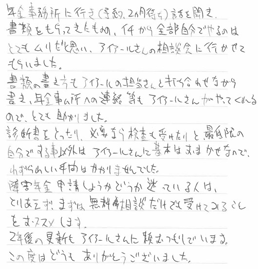 書き、年金事ム所への連絡等もアイアールさんがやってくれるので、とても助かりました。