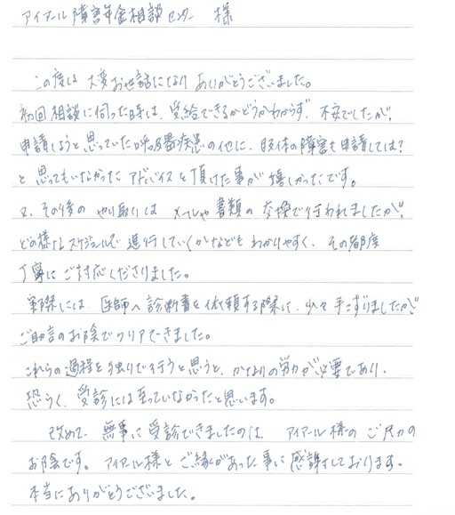 改めて、無事に受給できましたのは、アイアール様のご尽力のお陰です。